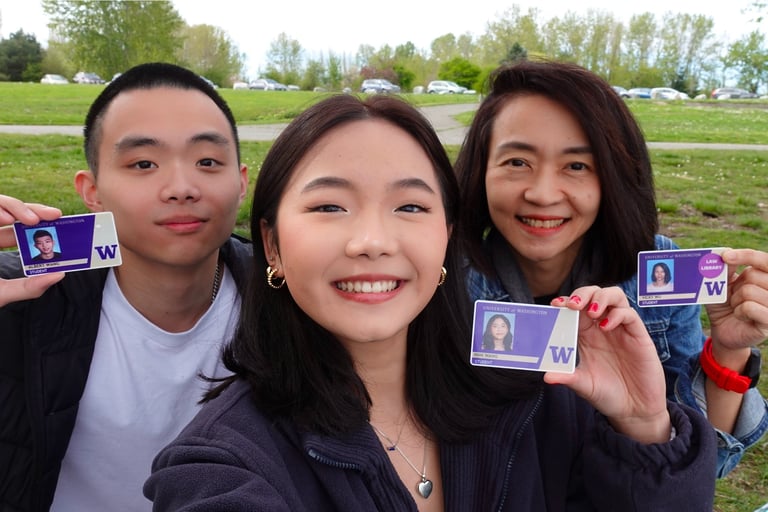 I was born in Taiwan and I moved to the U.S. at the age of 13. I am fortunate to have a mom that courageously carried out her dream to pursue graduate degrees in the U.S. at the age of 45 (concurrent to her parental role to two teenagers), and a dad that worked tirelessly to make this visionary initiative possible. My mother attended the University of Washington (UW) for her Ph.D. in Law, where my sister and I later followed her footsteps and became Huskies ourselves. I graduated from the UW in 2025 with a degree in Economics and International Studies, and I am currently an Account Manager at Asia Vital Components in Austin, TX. Outside of school and work, I surf, play a lot of piano, and make YouTube videos as a side quest. I am also very close with my grandma (Wang Ama) 😋.
